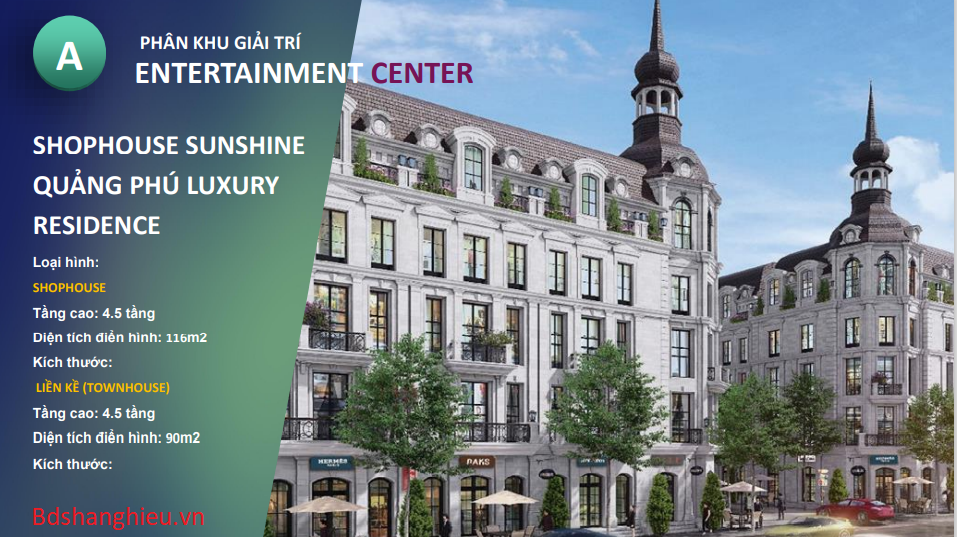 - Thiết kế xây dựng Shophouse: 4,5 tầng, DT đất: 116m2