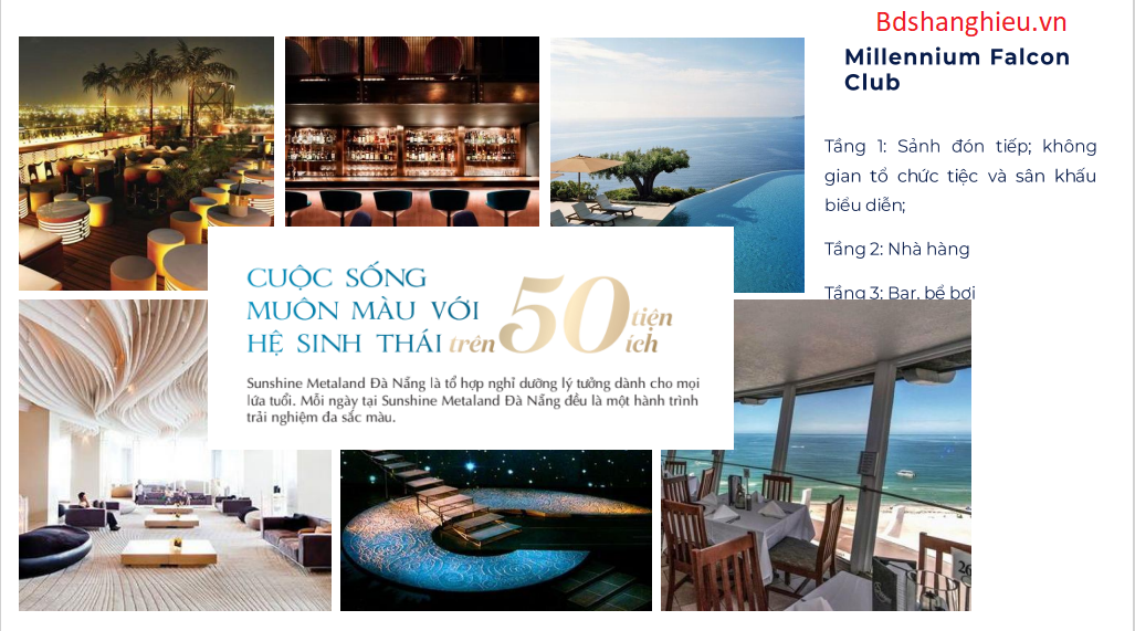 - Với mục tiêu cải thiệt chất lượng mỗi chuyến du lịch của khách hàng cao cấp, Sunshine Homes đã đầu tư xây dựng dự án Sunshine Metaland Đà Nẵng với không gian yên bình, xanh mát, nơi cư trú vun đắp những phút giây hạnh phúc cùng với đó là hệ thống tiện ích chuẩn 5 sao như khu mua sắm, hồ bơi resort, nhà hát ngoài trời…kết hợp với công nghệ Smart Living tiên tiến đã khẳng định được thương hiệu trên thị trường