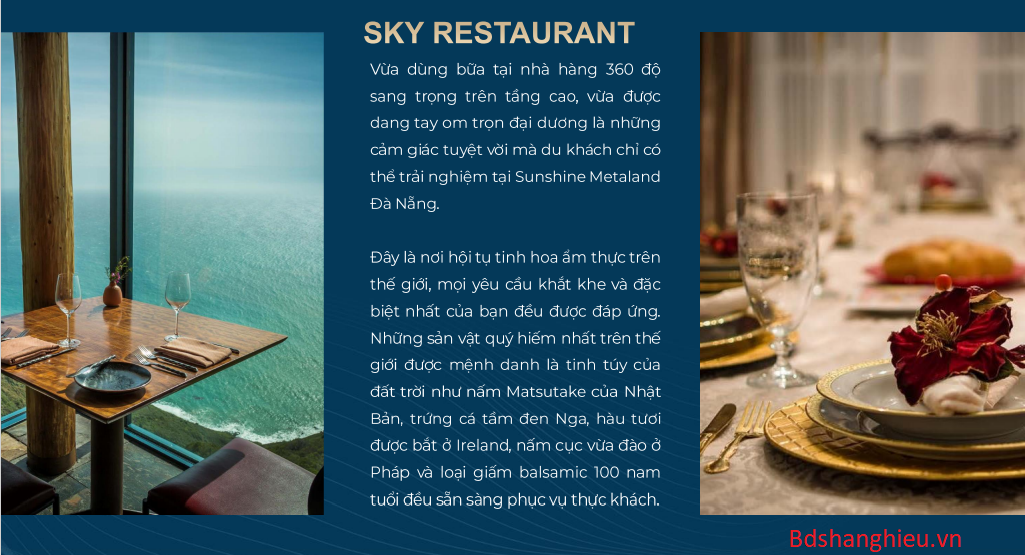 - Sunshine Metaland Đà Nẵng là công trình chiến lược mở ra cơ hội tăng tốc phát triển mọi mặt và nâng cấp ngành du lịch dịch vụ Đà Nẵng lên tầm cao mới . Chỉ 2-3 năm nữa thôi nơi đây sẽ hình thành nên một khu đại đô thị du lịch sinh thái kiểu mẫu mang tính biểu tượng của TP. Đà Nẵng.