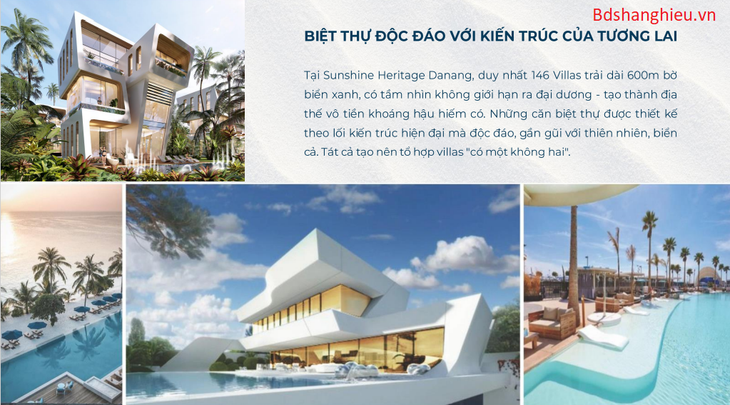 Tất cả những sản phẩm từ biệt thự nghỉ dưỡng đến khách sạn, căn hộ cao cấp tại Dự Án Sunshine Metaland Đà Nẵng đều được thiết kế theo phong cách hiện đại, hướng biển đón trọn nắng bình minh của bãi biển đẹp nhất hành tinh . Mỗi sản phẩm được thiết kế chú trọng vào không gian sống hòa nhập cùng thiên nhiên xanh, không gian bên trong mỗi phòng đều được thiết kế mở rộng, đón nắng và gió tự nhiên.
