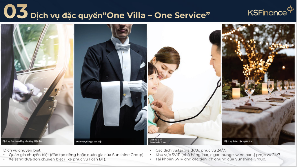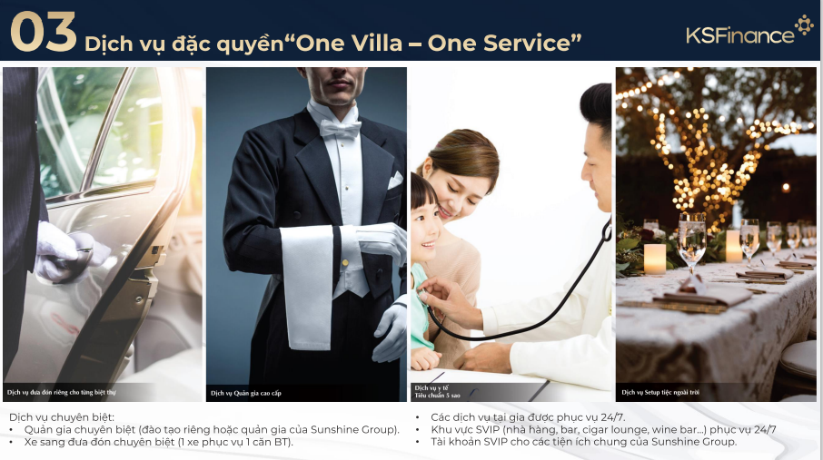 + Quản gia chuyên biệt (đào tạo riêng hoặc quản gia của Sunshine Group).